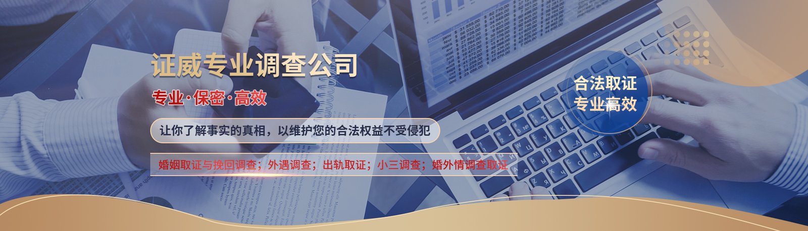 海宁市海昌证威信息咨询工作室是一家新型的商务调查咨询,婚姻咨询,家庭危机处理,企业人才引进招聘,企业猎头,企业风险管控,市场调查,打假维权为一体的专业性调查机构。 专门从事为私人调查、公司企业以及各级部门解决发展中的实际问题。以 “ 凝聚专业调查模式,解决客户实际问题 ”为宗旨,为客户提供更大的回报价值,作为自己的目标,奋力发挥我们的力量,从而为客户提供个性化全面化的服务。